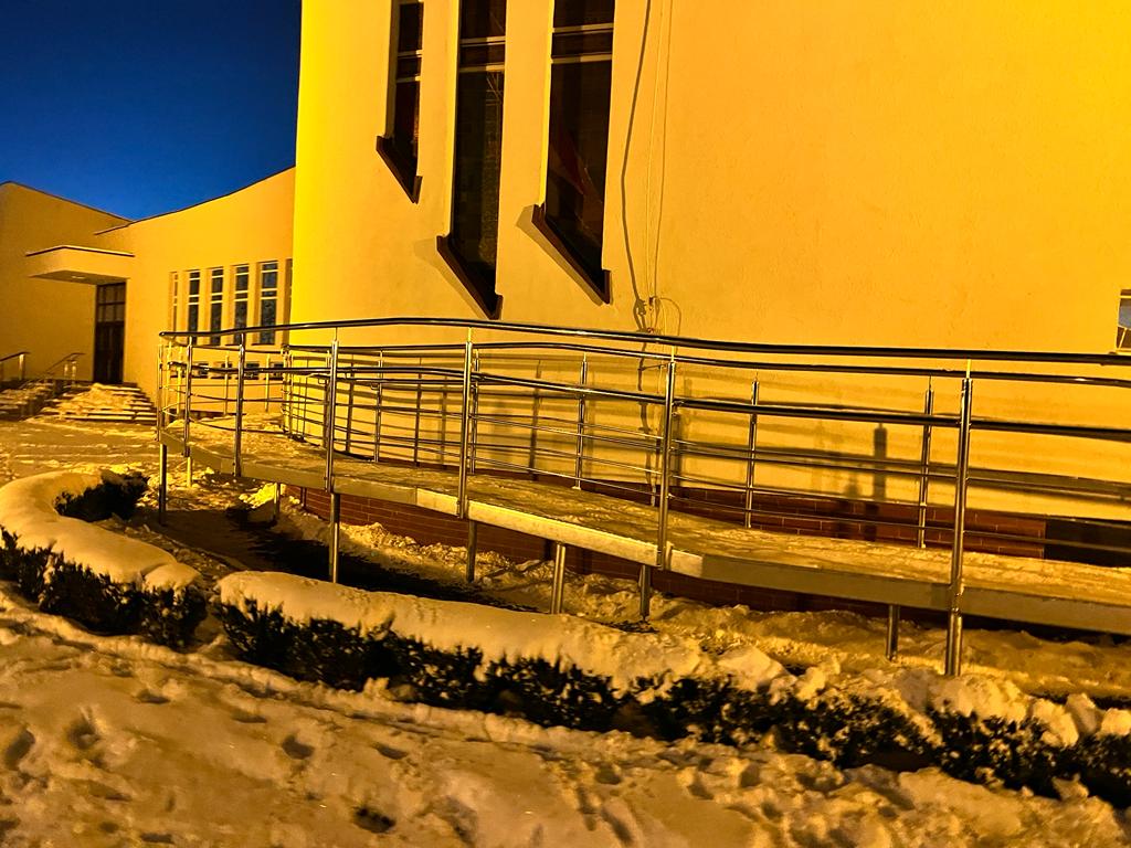 Podest dla Kościoła w Knurówie Podest dla wózków wykonany dla Kościoła w Knurowie. Poręcze wykonano ze stali nierdzewnej.